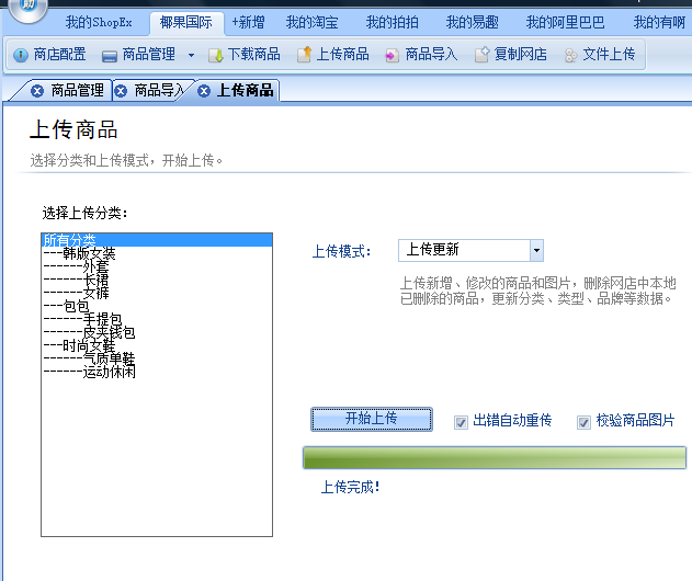 商品导入看到了么?看到就可以开始导入淘宝csv文件了,记得导入之前数据包的图片文件夹名字改成images,一定要改,切记切记!!!简单吧,椰果国际祝福大家生意蒸蒸日上!大家一定要自己看,我们不做一一指导。方法是非常简单的!